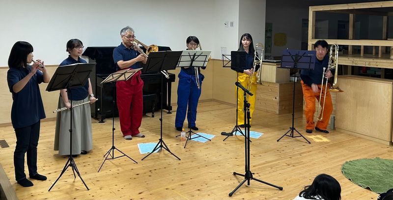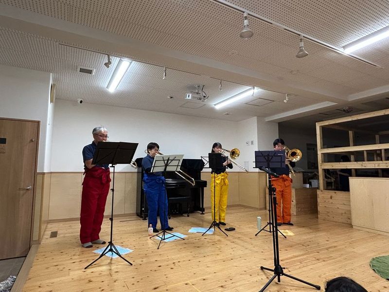 KSB(北見交響吹奏楽団)の方々をお招きし、親子で楽しむ音楽会を今年も開催しました。みんなが知っているディズニーや、おしゃれなジャズなど、トロンボーンとフルートの素敵な音色が夜の園内に響きました。「もっと聞きたい」という声も聞こえてきて、演奏者の方々も笑顔で返してくれました。素敵な音楽会をありがとうございました。